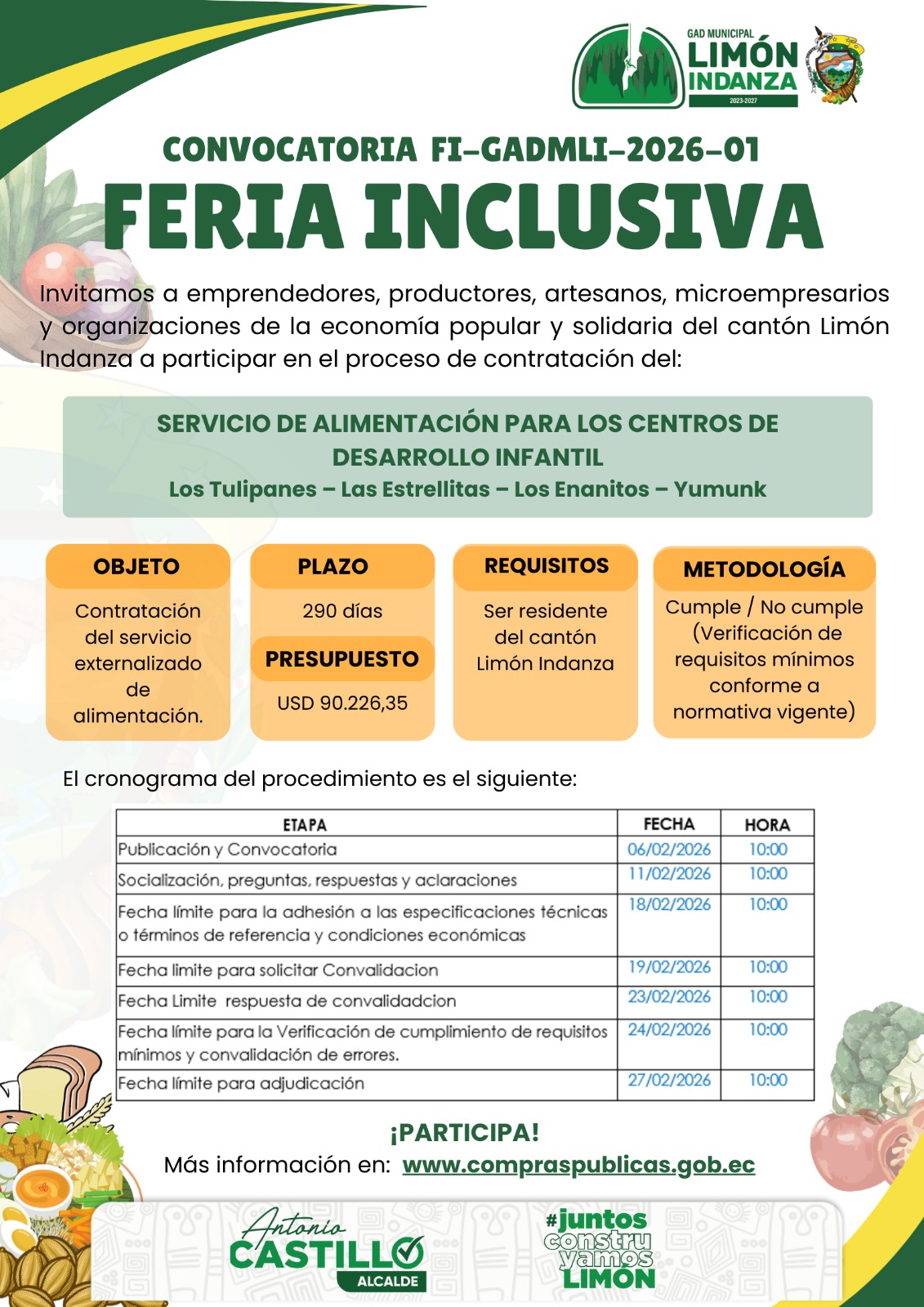 El GAD Municipal del cantón Limón Indanza, liderado por el Ing. Antonio Castillo, Alcalde, tiene el honor de invitar a...